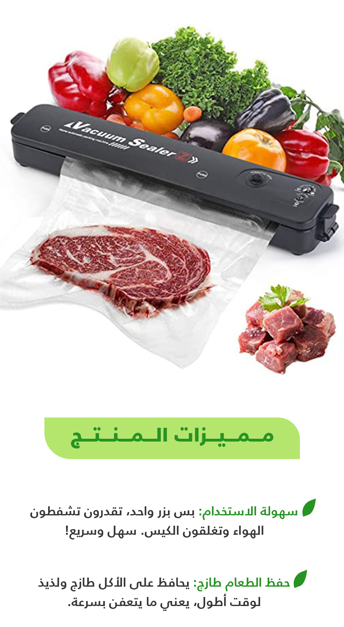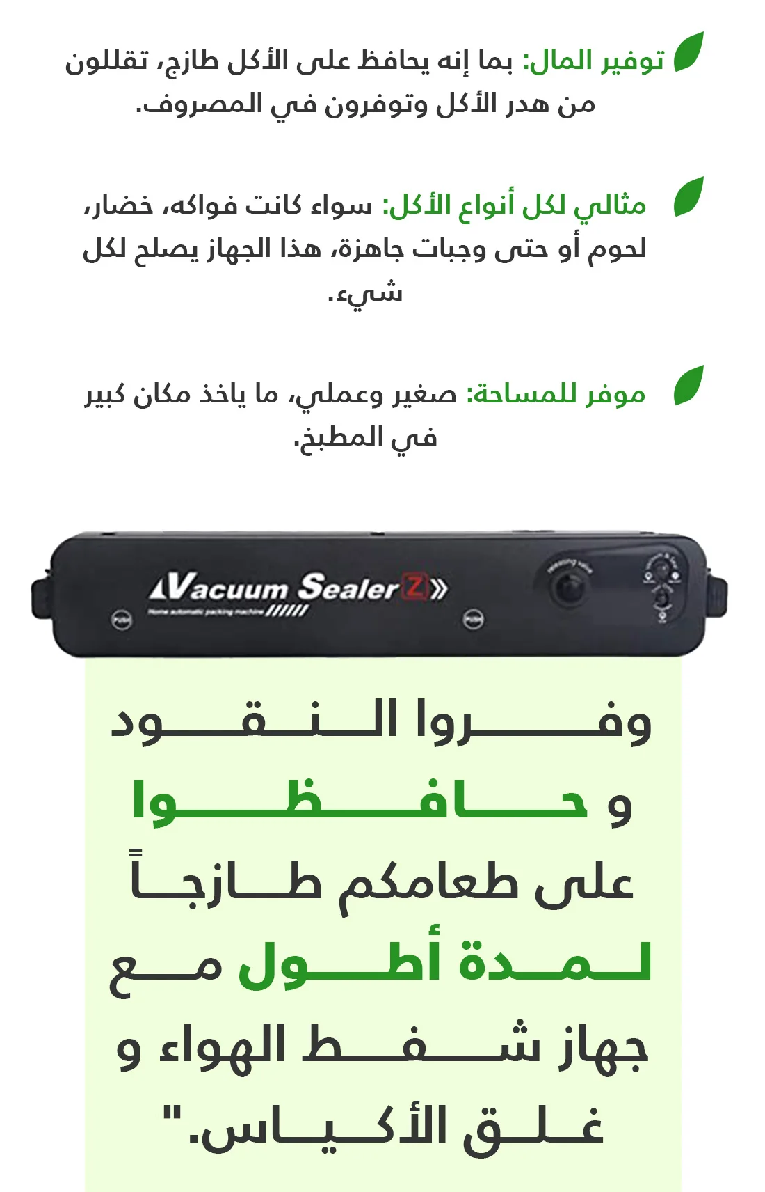 جهاز شفط الهواء وغلق الأكياس لحفظ الطعام