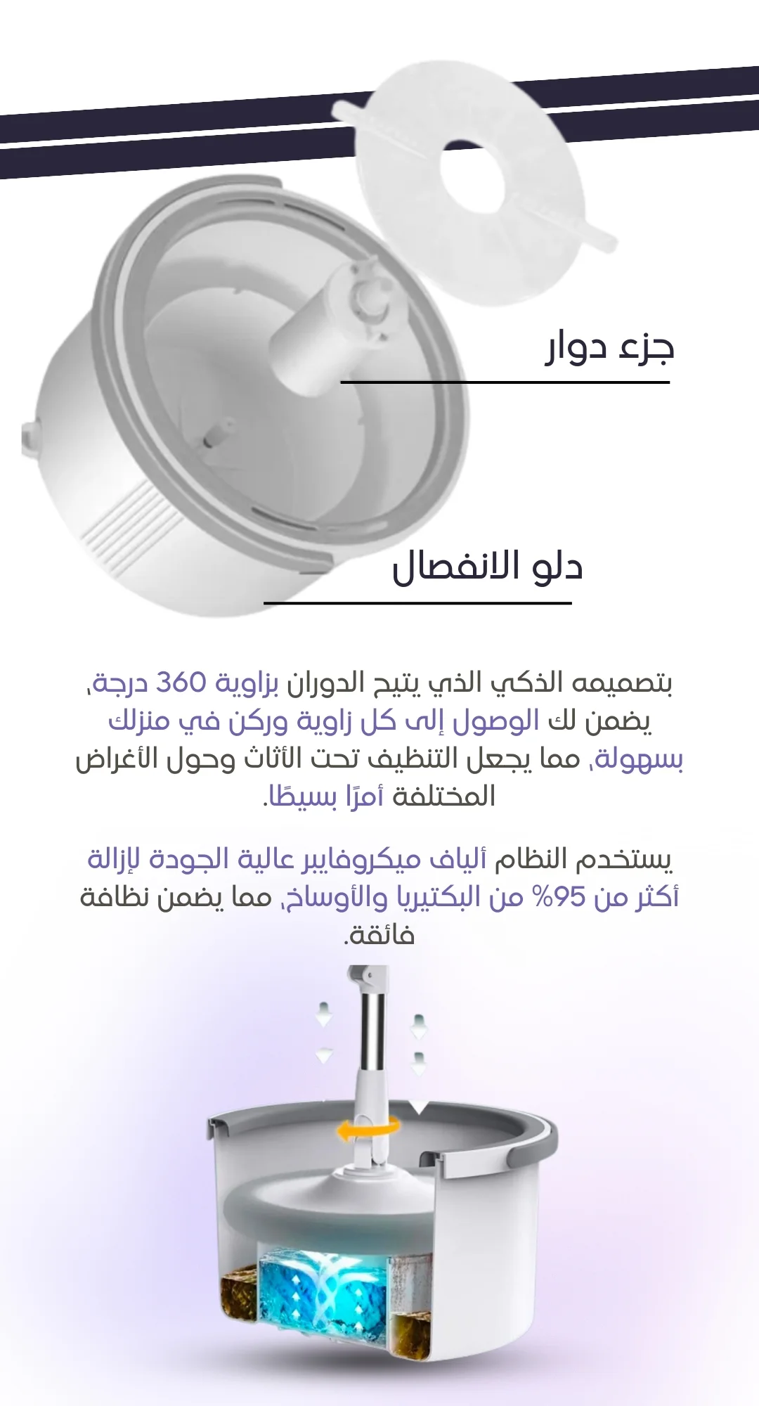 ممسحة الأرض برأس دوار 360 درجة